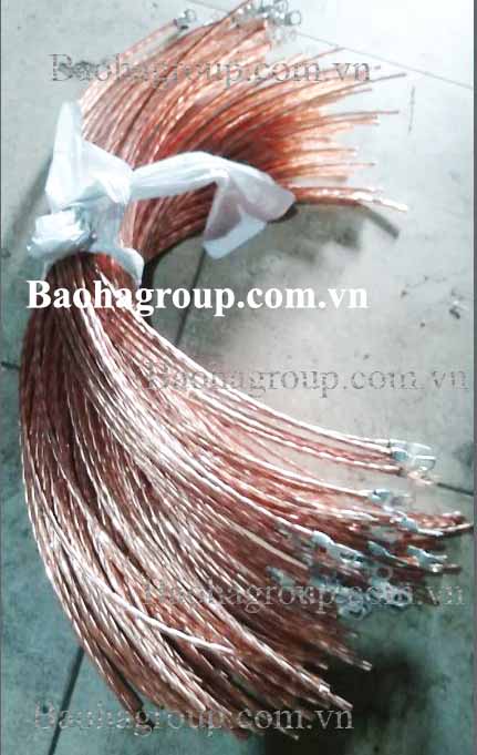 Dây đồng trần tiếp địa được cắt thành các đoạn phù hợp với tiêu chuẩn của sàn nâng, mỗi đoạn dây đồng trần này được bấm đầu cos ở 2 đầu.