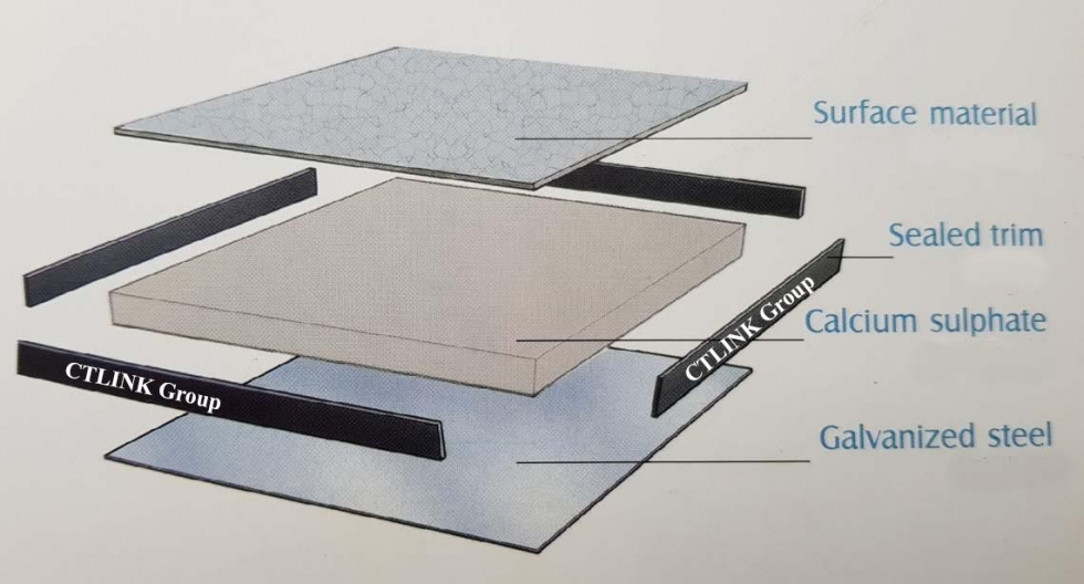 Tấm sàn nâng kỹ thuật được làm bằng các sợi gia cường Canxi Sulphate có tỷ trọng nén cao(1500kg/m3), mặt dưới dán tấm thép mạ kẽm dày 0.5mm, bốn cạnh được bảo vệ bời nhựa PVC màu đen. Thích hợp cho môi trường làm việc và điều hành.